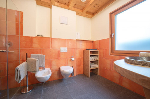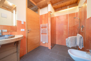 - Großes Bad mit Waschbecken, Toilette, Bidet und extragroßer Dusche