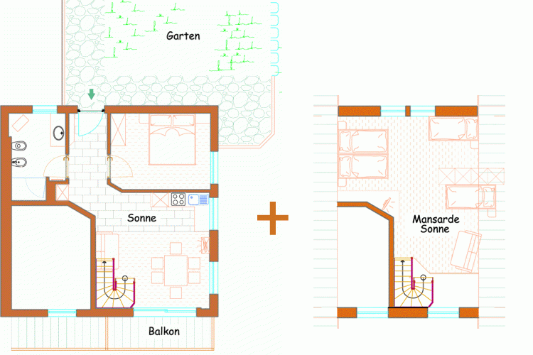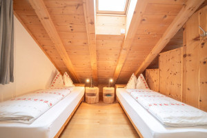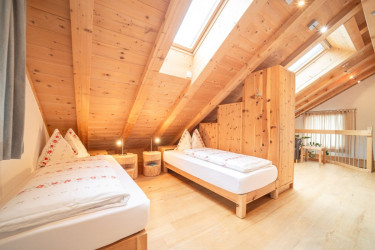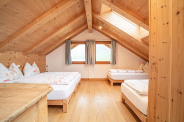 - zwei Schlafzimmer, ein Doppelbettzimmer im unteren Bereich und ein Vierbettzimmer in der Mansarde